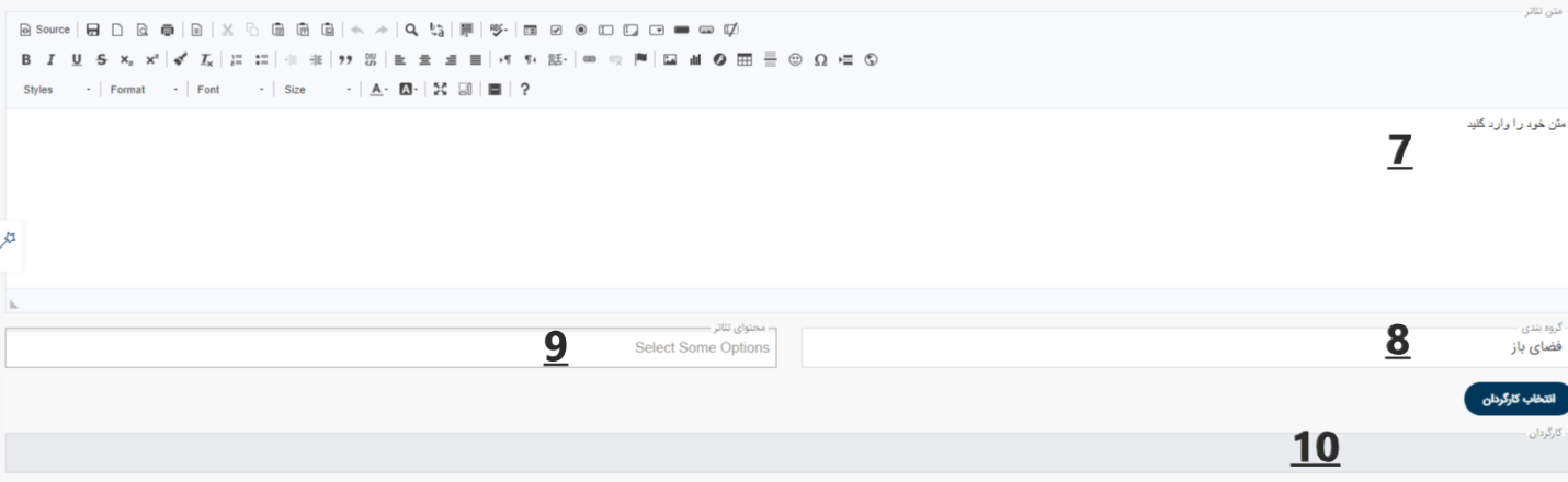 - در این قسمت محتوای تئاتر موردنظر اعم از خانوادگی، زندگی نامه و... را وارد کنید.